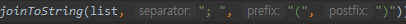 joinToString(collection = list, separator = "; ",prefix = "(", postfix = ")")